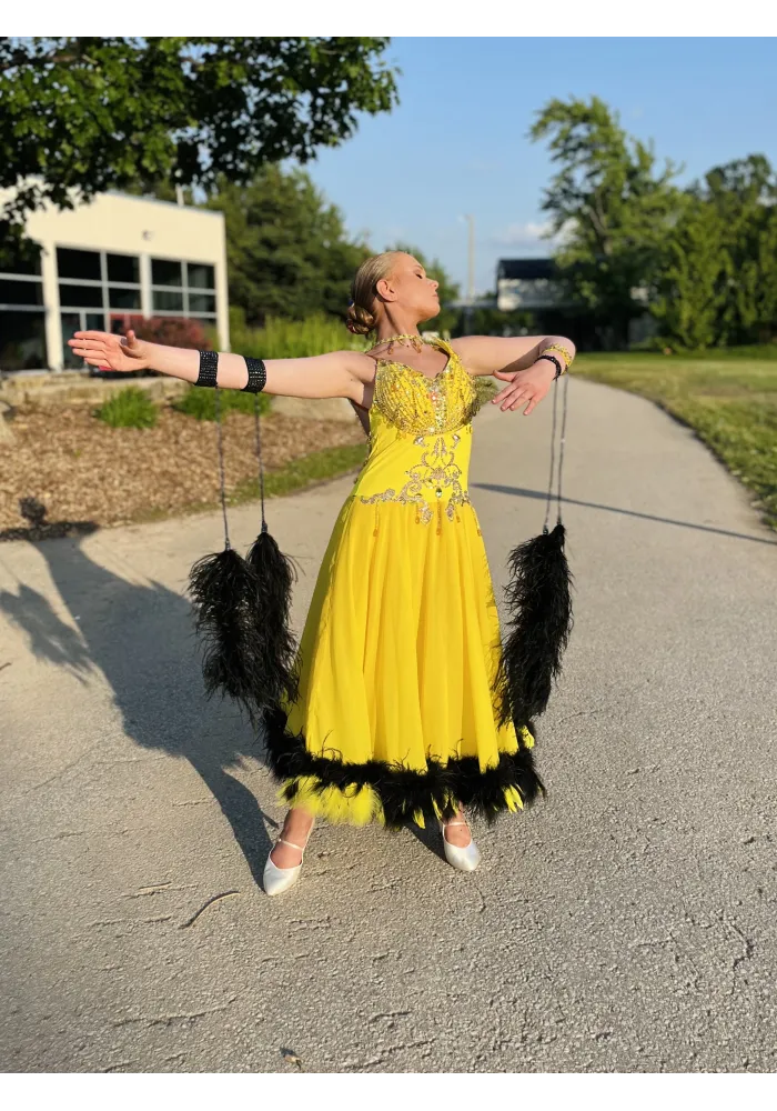 Professional Ballroom competition dress with ostrich boa.